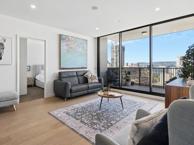 This stunning 2-bedroom, 2-bathroom apartment sits on the high level of Bohem Apartment. It is East facing, for you to enjoy the View of Adelaide Hill.